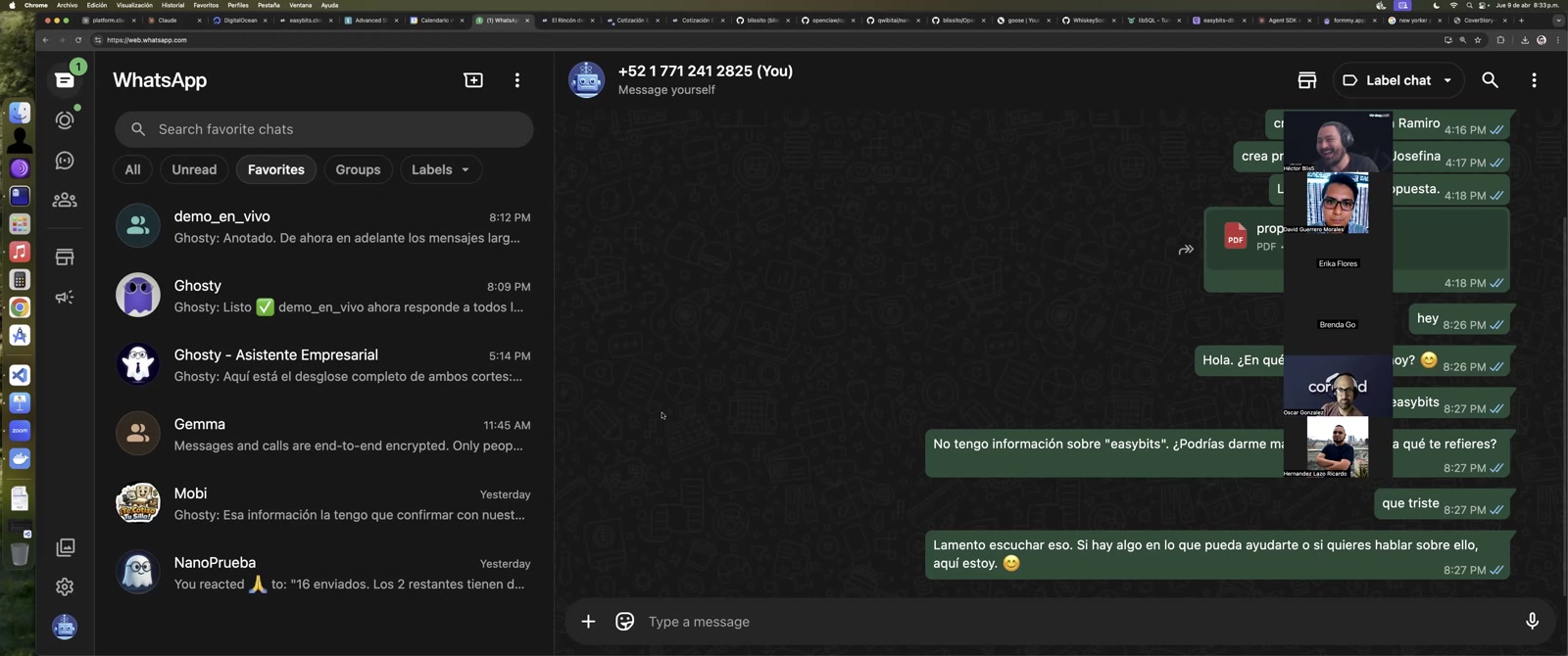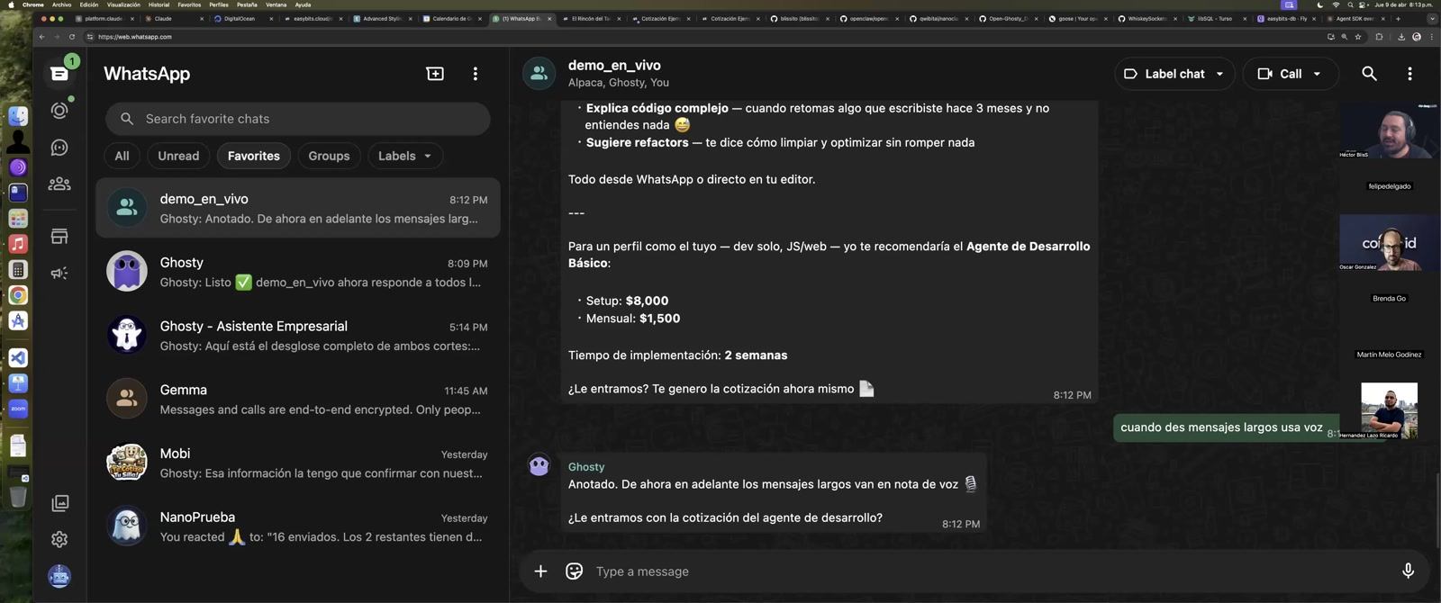 - ✅ Demo end-to-end — Ghosty respondiendo en un grupo de WhatsApp, cotizando un servicio y entregando la propuesta en PDF.