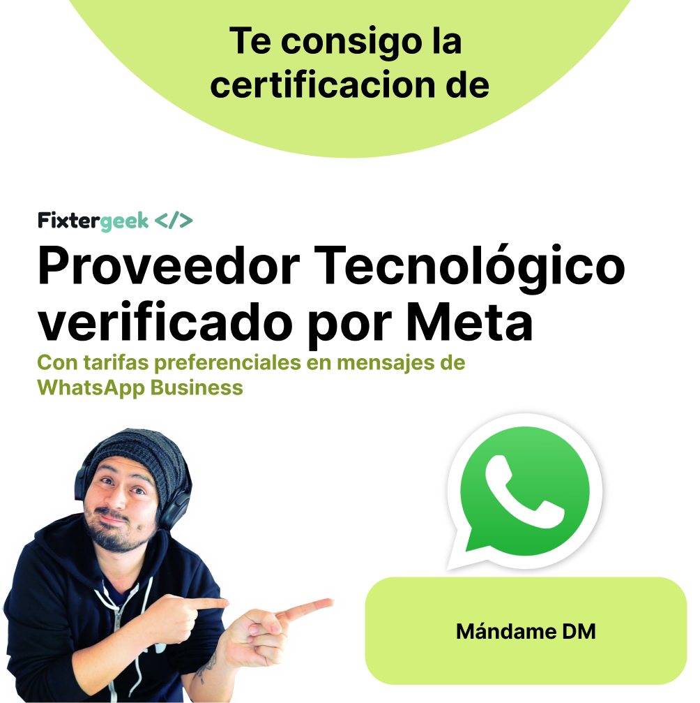 En fixter.org te conseguimos la certificación de Proveedor Tecnológico verificado por Meta, y te conectamos a las tarifas preferenciales de WhatsApp Business API.